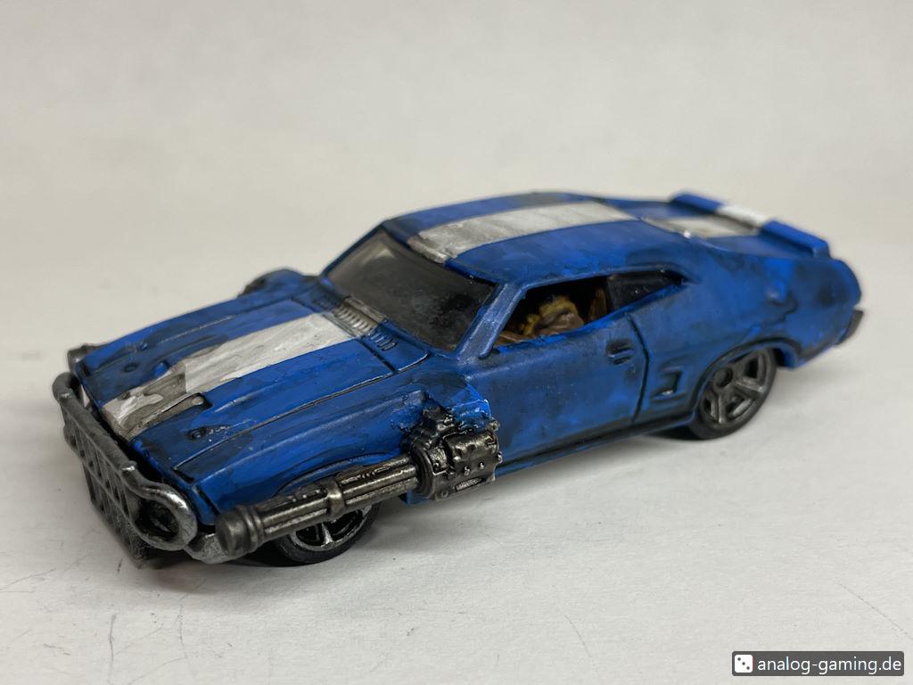 This is my version of the blue/white car from the Gaslands: Refuelled cover art, as close to the original as I could get it: